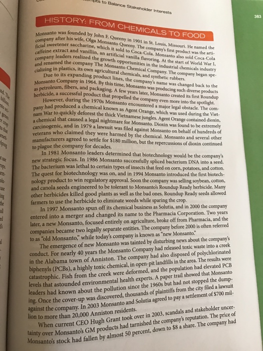 | Read Case 1 Monsanto Attempts To Balance Stakeholder Chegg |
